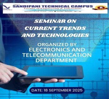 A seminar on “Current Trends & Technologies” was organized on 18th September 2025 in collaboration with Tattva Institute. The session was delivered by Mr. Mayur Shinde, who shared valuable insights into emerging technologies and industry advancements. He explained recent developments in areas such as Artificial Intelligence, IoT, and automation. The seminar helped students understand current industry requirements and career opportunities in the technology sector. The interactive session encouraged students to ask questions and gain practical knowledge. Overall, the seminar was informative and beneficial for all participants.