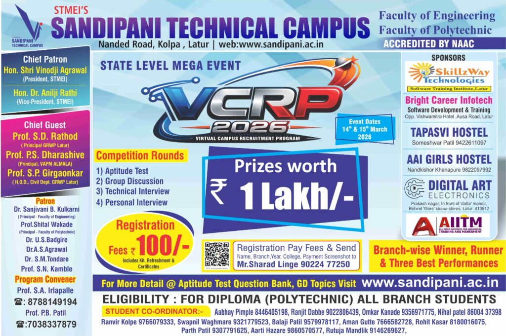 VCRP is Virtual Campus Recruitment Program was firstly introduced in 2014 by Computer & IT Department Student Association CIESA. is a state-level placement initiative organized by the college to provide job opportunities to final year students for Polytechnic. In 2015, this becomes an college Mega Event. This Event describes how campus recruitment are taken , So that they can prepare for their recruitment Process well. The main aim is to connect students directly with reputed companies through an organized recruitment drive at one common platform. We organize this event for all Diploma (Polytechnic) Branch Students.