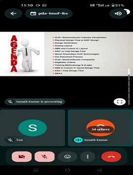 A webinar on “VLSI Skills” was conducted in collaboration with Gnanodaya VLSI to provide students with industry-oriented knowledge in chip design and semiconductor technology. The session covered fundamental concepts of VLSI design, career opportunities, and required technical skills. Experts explained the importance of tools and practical training in the VLSI domain. Students gained valuable guidance on how to build a career in the semiconductor industry. The webinar was highly informative and beneficial for aspiring electronics engineers.